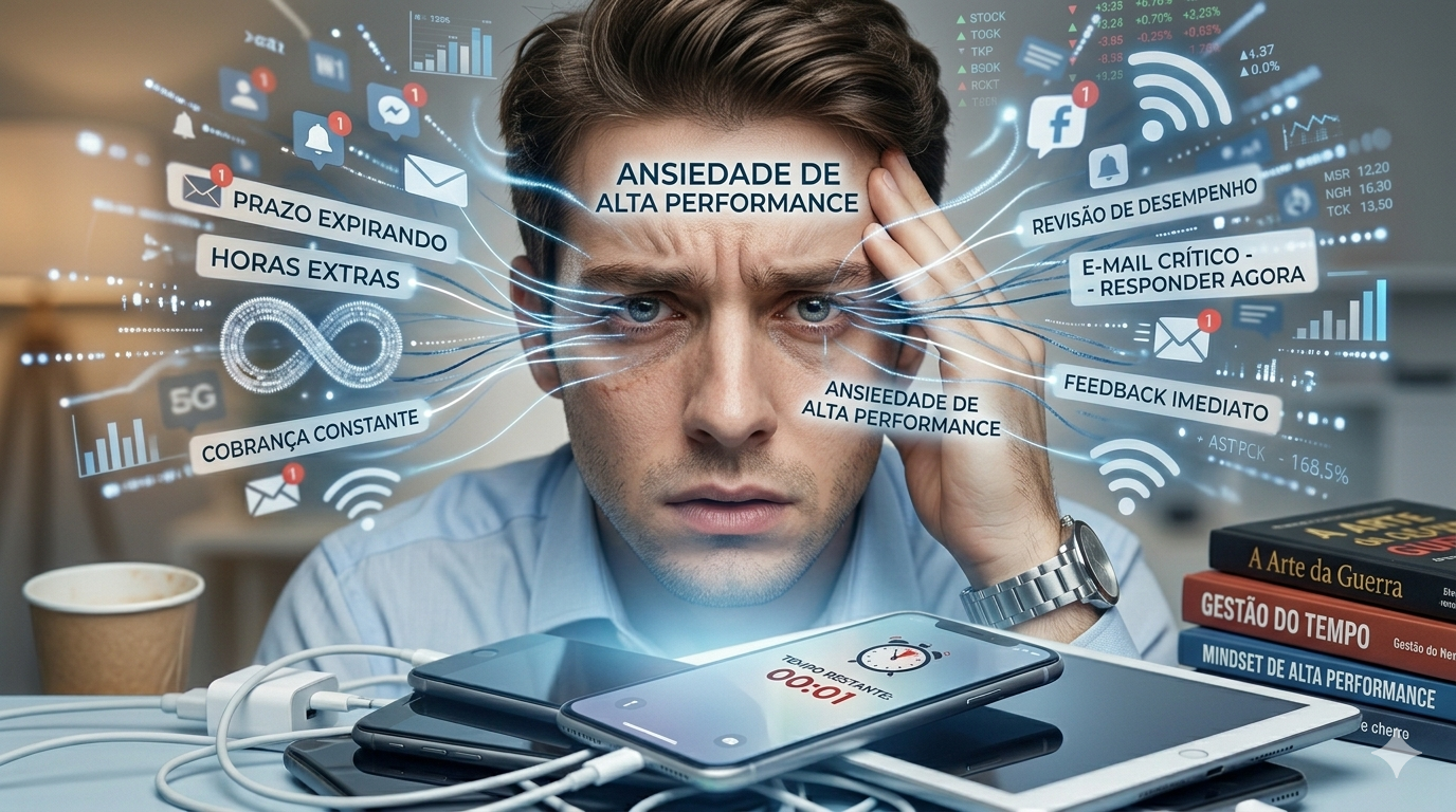 Não apenas trabalhar muito, mas trabalhar sem pausas, com alta exigência cognitiva e múltiplas demandas simultâneas.